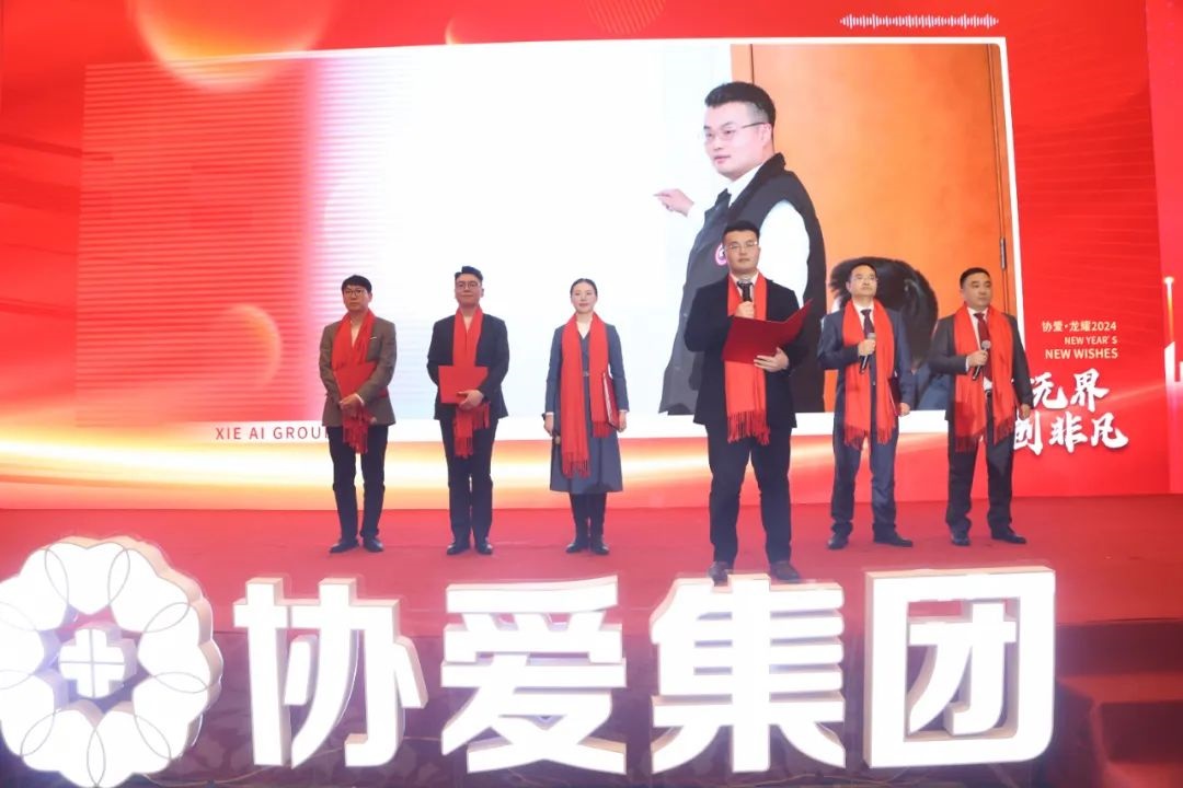 年会盛典在《盛世龙腾》开场下拉开序幕,今年会集团董事长梁智勇做开幕致辞。