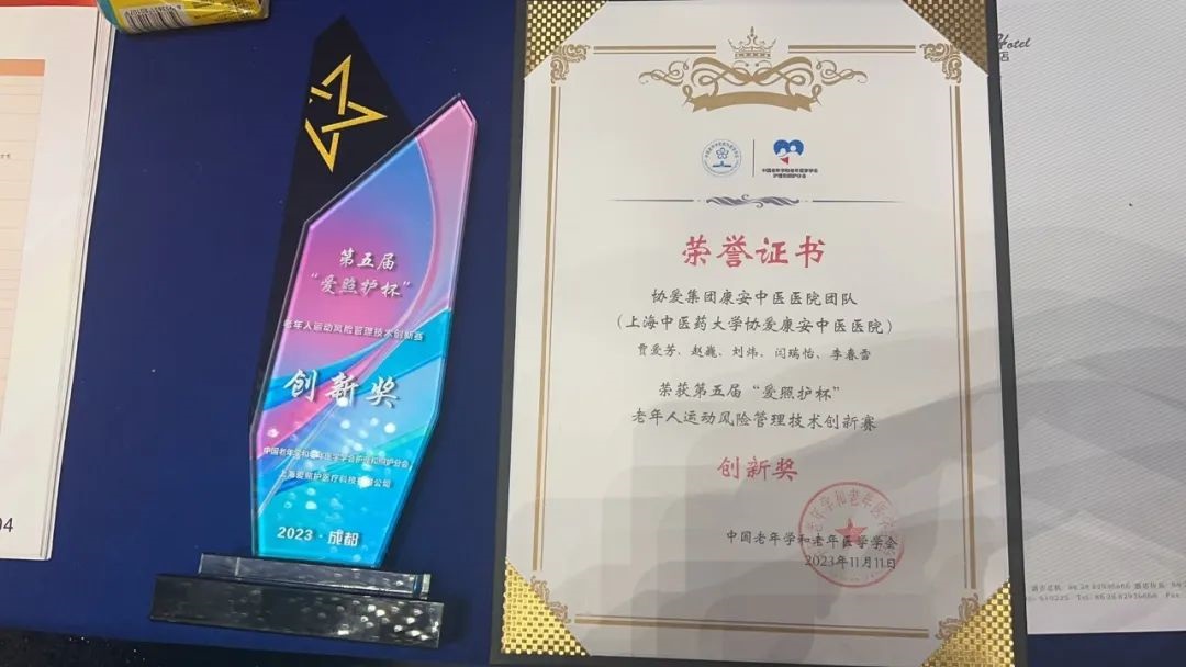 今年会荣获第五届“爱照护杯”老年人运动风险管理技术创新赛创新奖